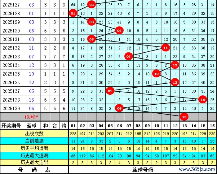 蓝球:历史同时0路号开出:06、12、15;1路号开出;01、07、10;2路号开出;05、08、11、14,蓝球012路个数比为8:4:7,现时1路号历史同时轮空3年,本年同时贵重1路号出现,参考号码13。